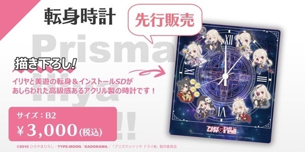 イリヤと美遊の転身&インストールSDがあしらわれた高級感あるアクリル製の時計です!