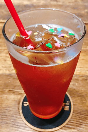 ソーダ×ピーチティーシロップ×ハートシュガー